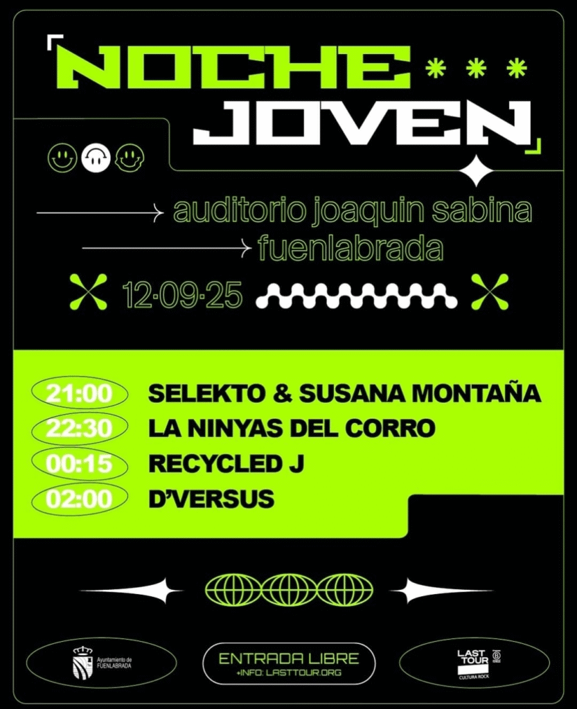 El recinto Joaquín Sabina del Parque Ferial será el epicentro de la noche con el Festival Joven (21:00 h), que reúne a grandes nombres de la música urbana nacional: